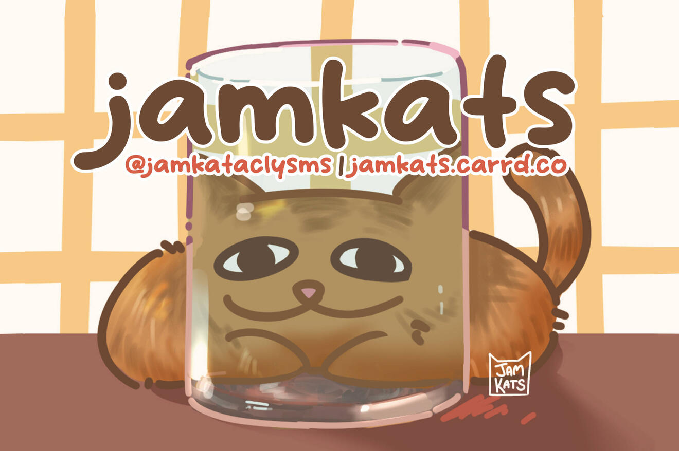 I am Zac (they/them)! I also go by Jam & Kats. I love cats, cute things, coffee, and illustrating.My work utilizes warm colours, charming line-work, and silly illustrations that will make you smile!