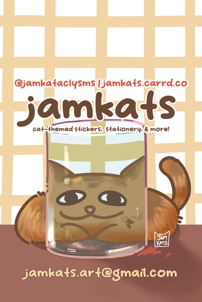 I am Zac (they/them)! I also go by Jam & Kats. I love cute things and illustrating.My work utilizes warm colours, charming line-work, and silly illustrations that will make you smile!