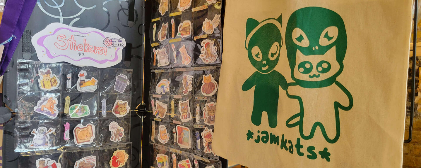 JamKats is Zac's artist alias, and the name of their cat-sticker-and-stationery shop! You may see some familiar faces when exploring their world...